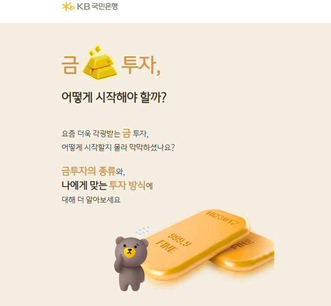 [1] 국민은행 - 금 투자 방법 알아보기 - 금통장, 골드바 (https://obank.kbstar.com/quics?page=C111597)