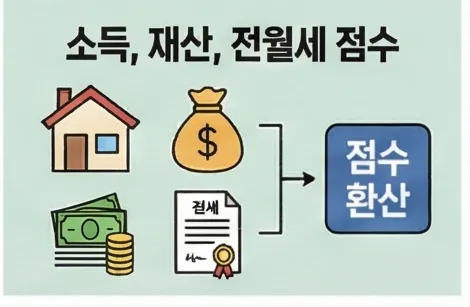 직장인처럼 월급만 보는 게 아니라 소득, 재산, 전월세까지 모두 점수로 환산해요.
