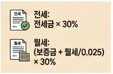 월세: (보증금 + 월세/0.025) × 30%