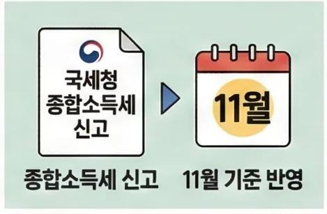 네, 국세청 종합소득세 신고 자료를 기준으로 전년도 소득이 반영됩니다. 보통 매년 11월에 새로운 소득 기준이 적용됩니다.