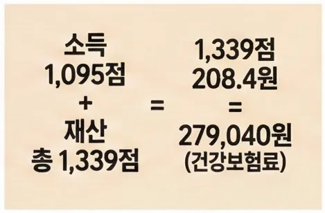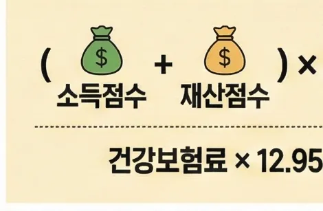 월 건강보험료 = (소득점수 + 재산점수) × 점수당 금액(208.4원)