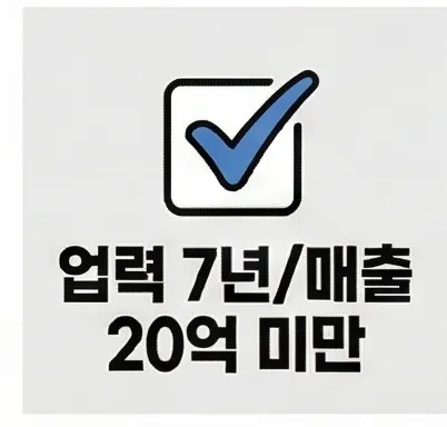 ✔ 업력 7년 이하 (신산업 10년), 매출액 20억 원 미만 확인