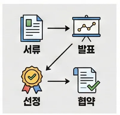 서류 심사 → 발표 평가 → 최종 선정 → 협약 체결 순서로 진행됩니다.