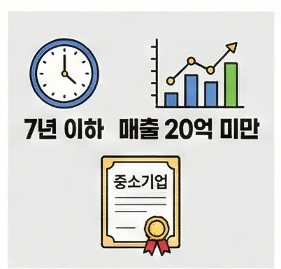 ✔ 업력 7년 이하 기업 (신산업 분야는 10년까지 가능)